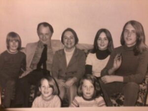 1973. Flavin family picture for the Royal Oak Tribune as my father ran for president of the Ferndale School Board. L-R, Top: Steve (9), dad (43), mom (41), Liz (15), Paul (14); Bottom, me (7), Peter (8). The next year, mom divorced dad, and Liz and Paul left the household in 10th and 9th grades, respectively, and the family went from seven to four.