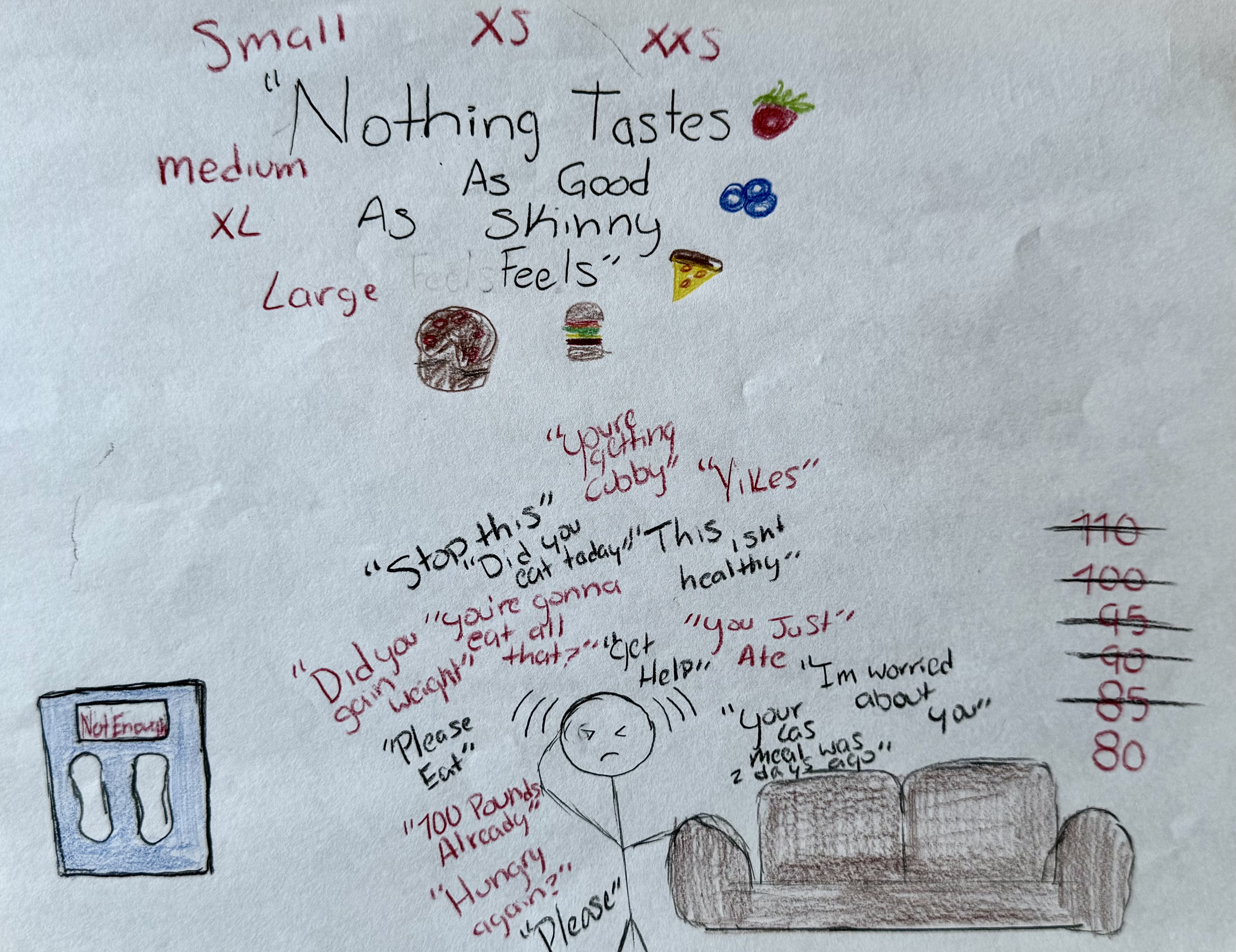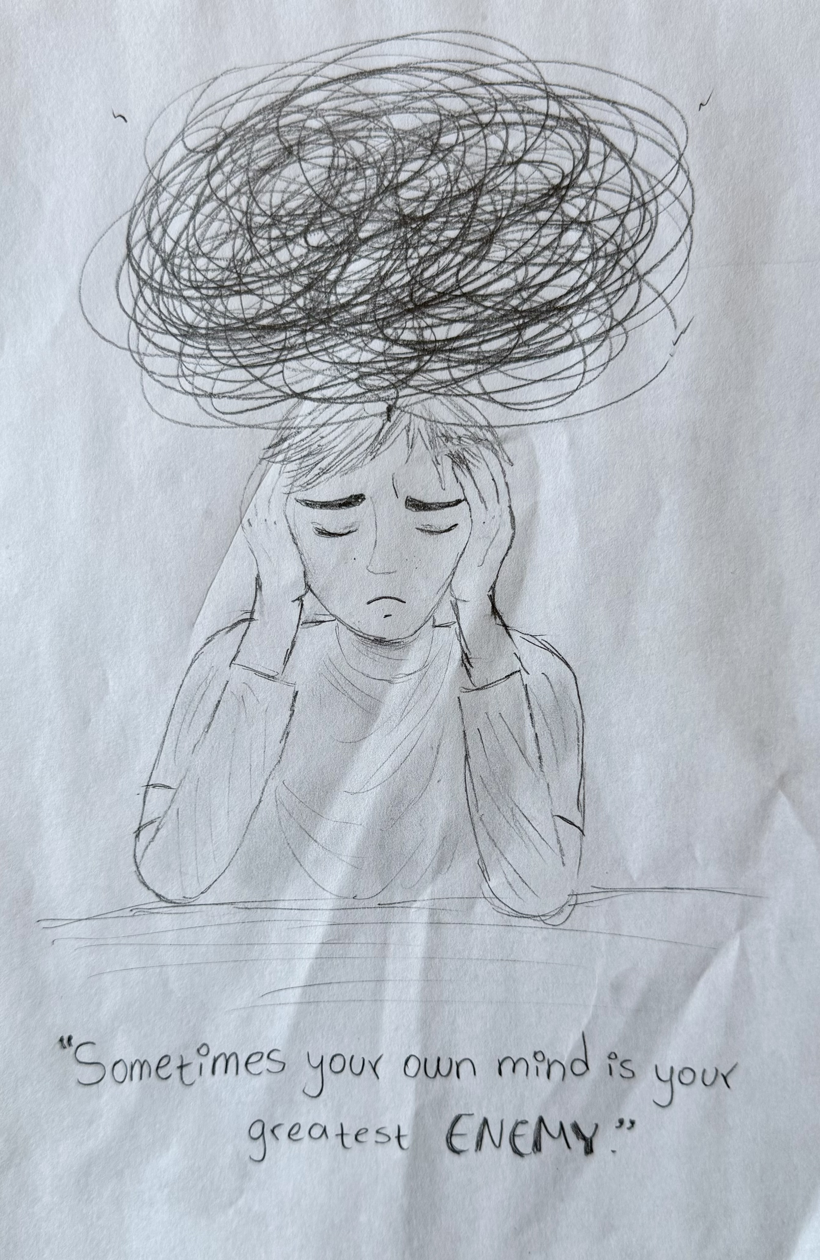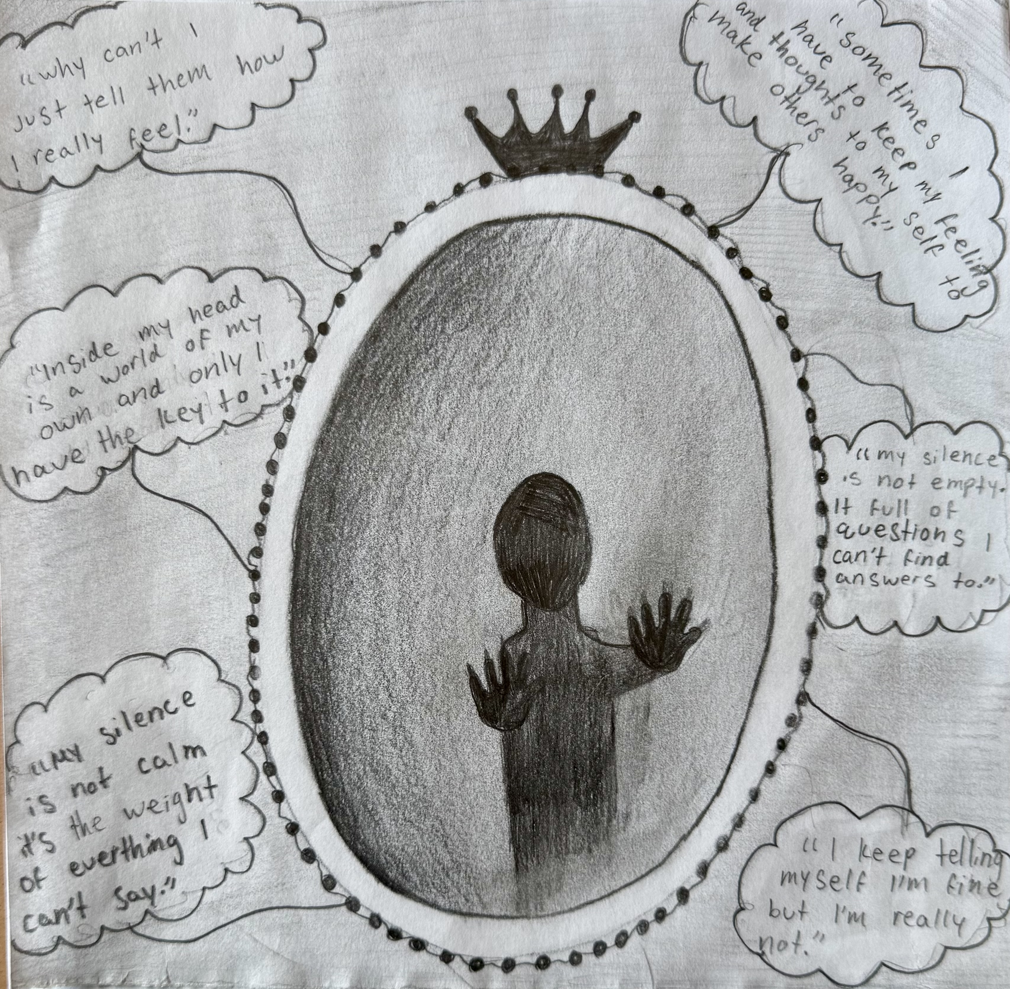 In the student work below, their assignment was to create any piece of art or writing in any form that expresses a metaphor for a prison they experience in their lives. They range from immigrants who are in America as refugees to students coping with mental illness.