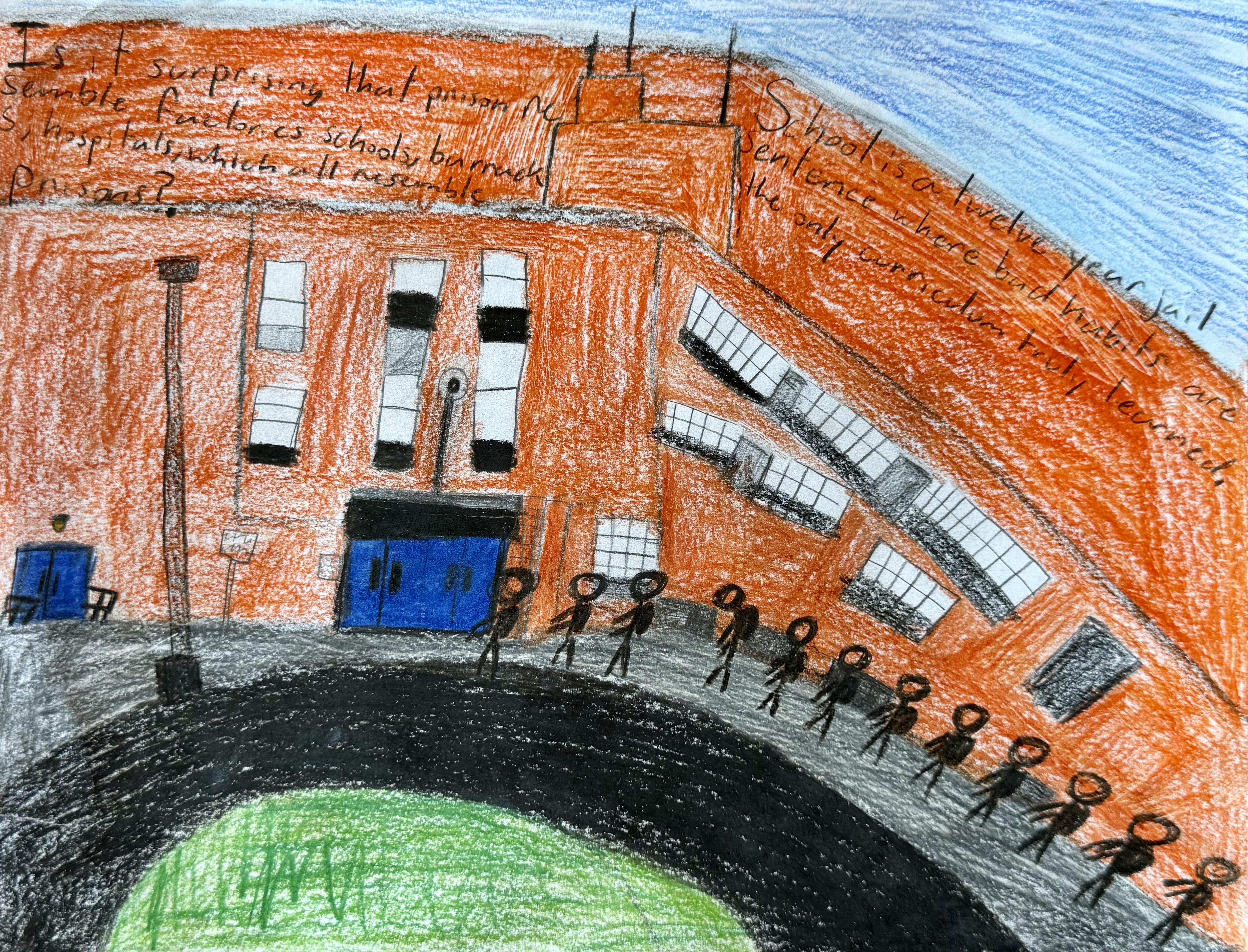 In this student work, the assignment was to create a piece of art or writing in any form that expresses a metaphor for a prison they experience in their lives. (See more student work at the bottom of this page.)