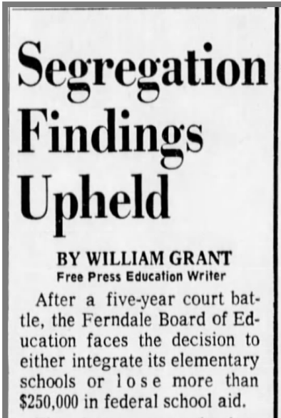 2 – For more on segregation in Ferndale, go to Ferndale Schools.